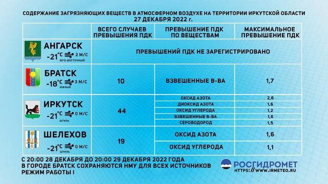 [28.12.2022] Мониторинг состояния атмосферного воздуха 27.12.2022
