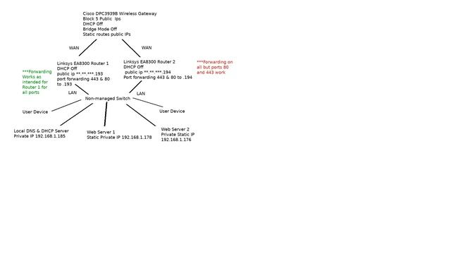 Can't port forward Ports 443 and 80 on second router /w own static public IP