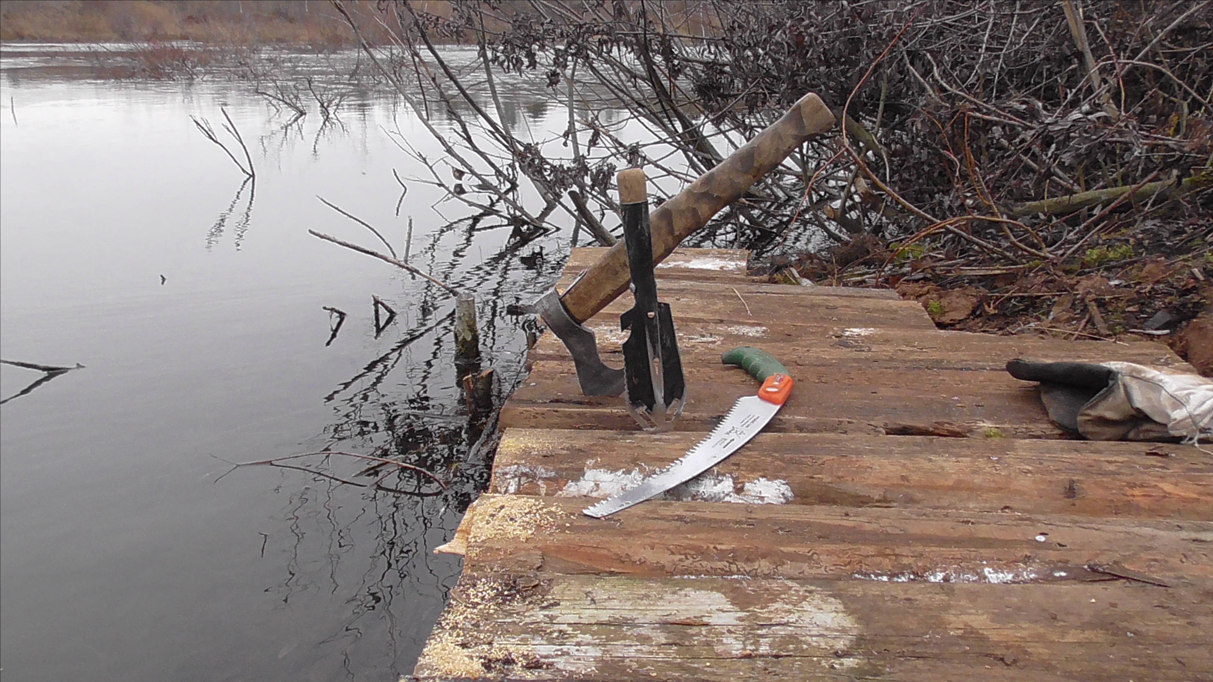 Готовлю место для рыбалки путем укрепления берега .