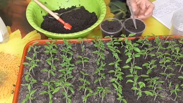 Пикировка томатов. Показываю распикированные томаты и сам процесс пикировки.