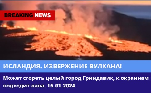 ?В Исландии может сгореть целый город Гриндавик, к окраинам подходит лава.15.01.2024
