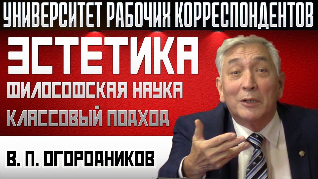 Эстетика – философская наука. Классовый подход. Профессор В.П.Огородников. 10.10.2019.