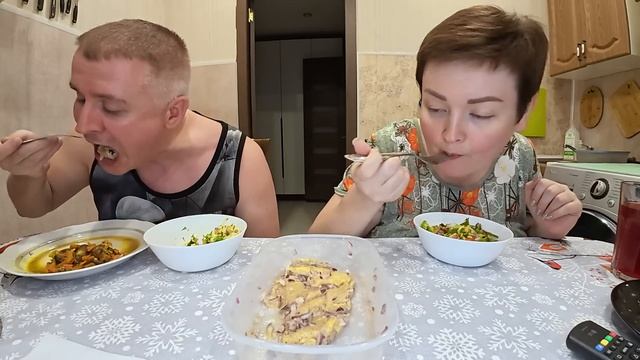 Мукбанг наготовили ВКУСНЯТИНЫ и ВСЁ СЛОПАЛИ за милу душу! Аж тарелки ОБЛИЗАЛИ) Семейный ужин Россия