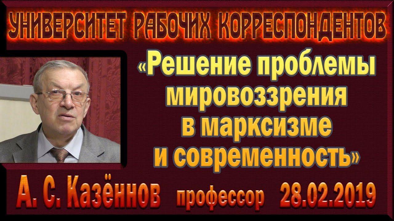 «Решение проблемы мировоззрения в марксизме и современность». А.С.Казённов. 28.02.2019.