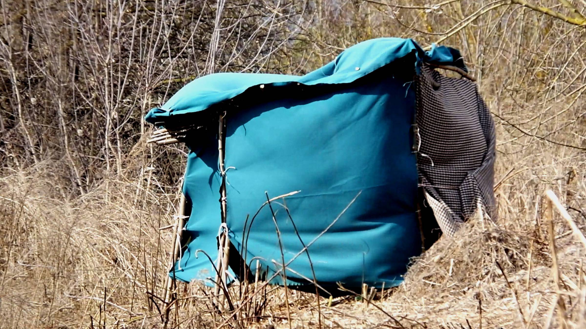 Сегодня в 15:47 южный ветер 8,0 м\сек. Весной и осенью бывают сильные ветра и поэтому долговременные укрытия из жердей нужно от них крепить на растяжки. Вёл съёмку без штатива. Я стоял твёрже.