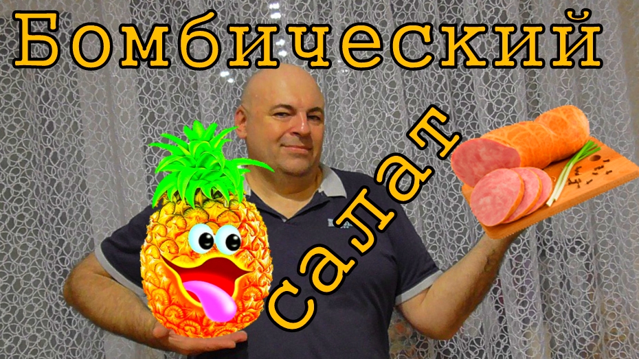 Ветчина. Ананас. Маринованные грибы. Изюм. Яйца. Сладкий перец. Зелёный лук. Чеснок. Майонез. Соль,перец.