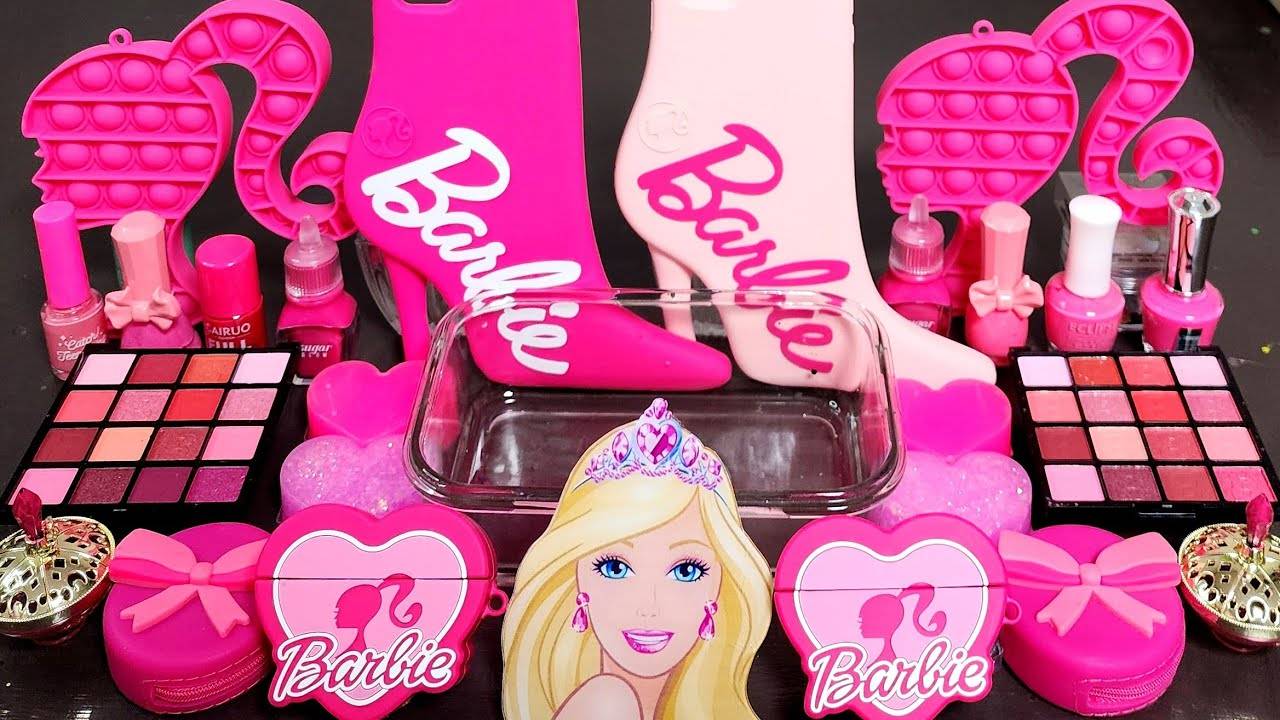 Розовый слайм для Барби ASMR,Смешиваем глиттер для макияжа в яркий ,хрустящий слайм ASMR