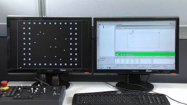 Scanner matriciel haute précision, avec optique télécentrique et construction étudiée pour l’utilisation en atelier.