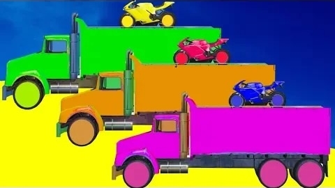Мультики про цветные Мотоциклы на Грузовиках для Детей Супергерои Прыжки Учим цвета
