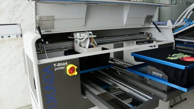 Yuxunda double station DTG printer with Epson i3200A1 heads on black t shirt