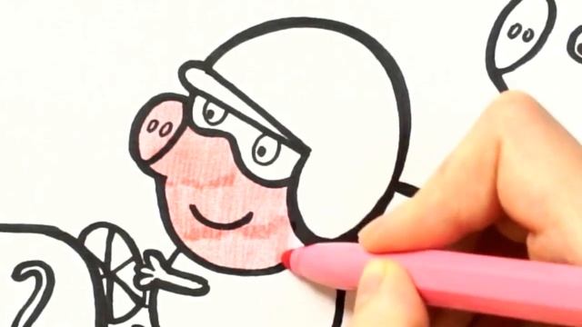 Dibuja y colorea al hermano de Peppa Pig George en el auto de carreras&Dibujo para niños