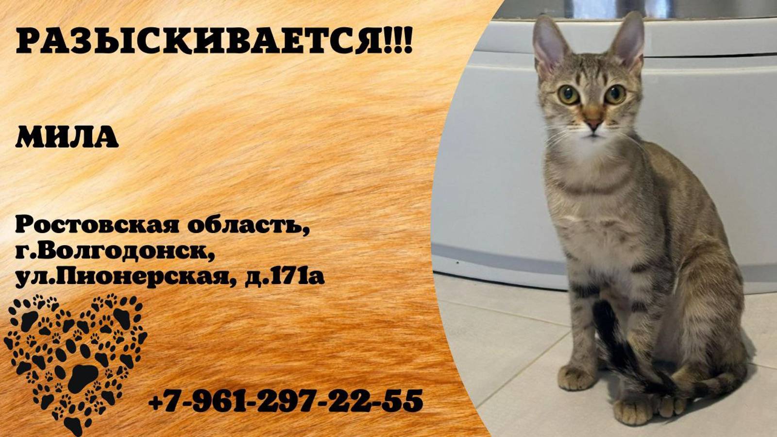 Пропала кошка! МИЛА. Ростовская обл, г. Волгодонск