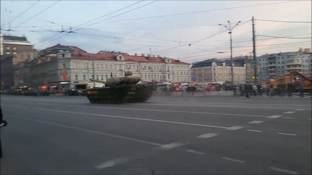 Танк Т-14 на гусеничной платформе "Армата" на марше на репетицию парада Победы, Москва, 2015