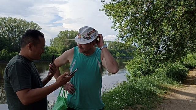 Турыст из Китая гуляет у канала и Александр Елизарэ