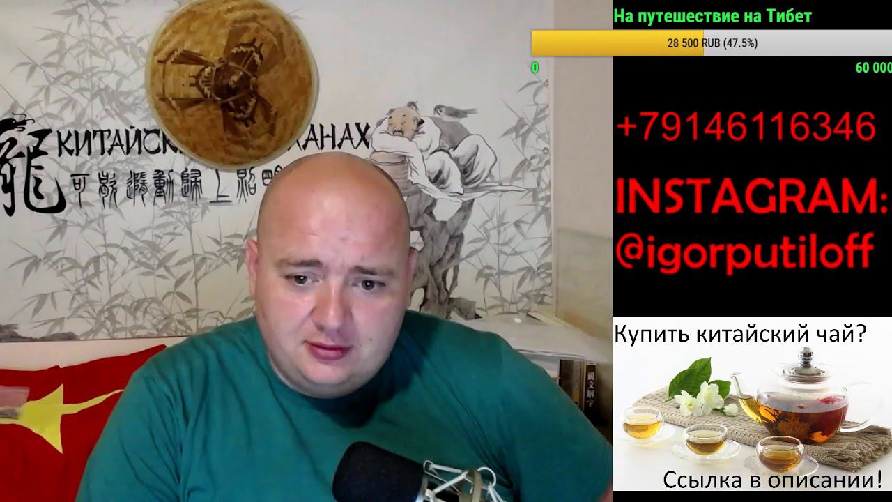 Донат (отображается на экране): http://www.donationalerts.ru/r/putiloff Официальная группа канала https://vk.com/club133678276 Купить чай: https://vk.com/market-133678276 Мои статьи на яндекс-дзене zen.yandex.ru/id/5cd97fd2da97b800b4826a9b *** Whatsapp, Telegram, Viber, Wechat: +79146116346 (можно звонить, если дозвонитесь) Для пожертвований (донатов) : DonationAlerts: http://www.donationalerts.ru/r/putiloff PayPal: igorputiloff@yandex.ru Карта сбербанка: 4276 8030 1859 0360 WeChat-Pay (微信支付) http://s012.radikal.ru/i319/1707/9c/a93989b62262.png Alipay (支付宝): kitairus@163.com Яндекс-деньги: 41001855873853 Инстаграм: https://www.instagram.com/igorputiloff/