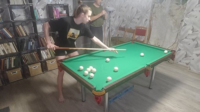 Бильярд дома.Стол 6 футов.Битва за чемпионство продолжается..Вторая партия..