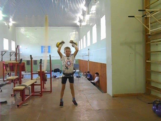 Гиревой спорт. Сазанов Илья 2012 года рождения. Упражнение Толчок 2-х гирь 6 кг за 2 минуты (Спринт) 12.10.2020 года. Результат 23 подъёма.