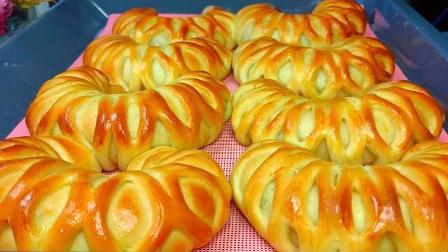 Ингредиенты: 2яйца(1желток оставить для смазывания) 500 мл-теплое молоко 25 гр-дрожжи 70 гр-сахар 140 мл-растительное масло 1ч.л.-соль 800-850 гр-мука Начинка: 300 гр-творог 100 гр-изюм 3ч.л.-сахар