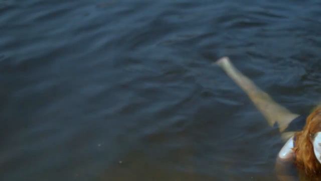 Девушка учится плавать в природной воде.