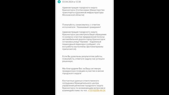 Ответ с сайта Добродел. На сегодняшний день лично не могу проверить данную информацию, но поверю, что после личного приема у главы города Красногорска и отправки его подчинённым вчера вечером на рабочий номер эту же информацию - результаты. Всем чистого и безопасного города. #2024 #россия #красногорск #город #дом #ответ #отчет