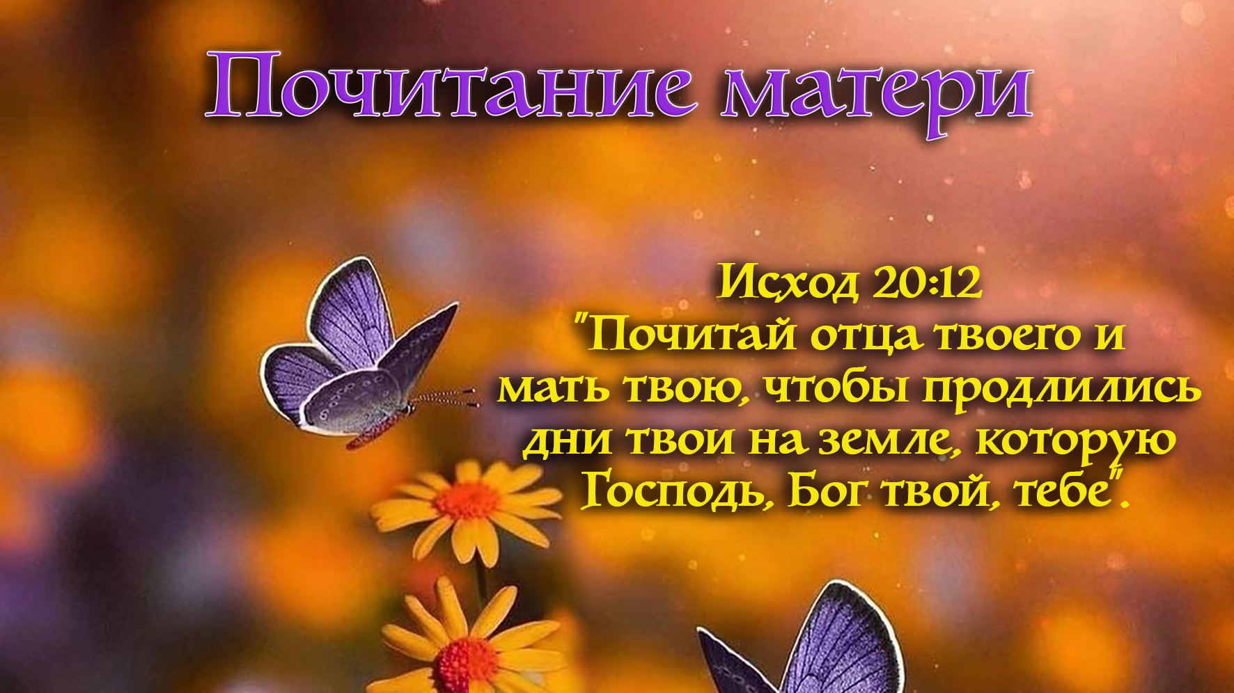 Исход 20:12 "Почитай отца твоего и мать твою, чтобы продлились дни твои на земле, которую Господь, Бог твой, дает тебе".
