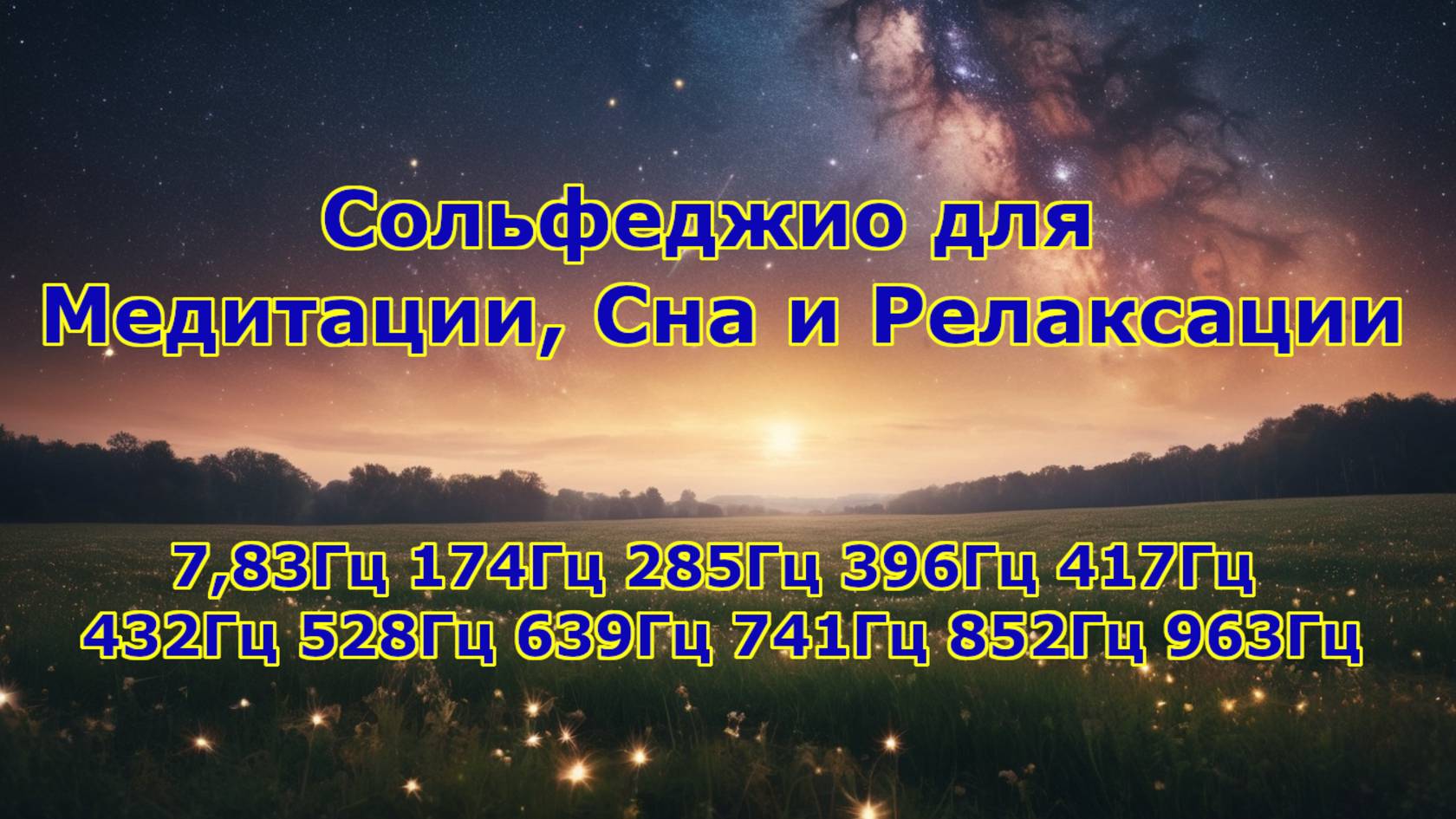 #медитация #частоты #сольфеджио #звукотерапия #исцелениезвуком #релаксация #783Гц #174Гц #528Гц #963Гц #частотысознания #длясна #пробуждениедуха Это видео — полное погружение в мир целительных частот. Откройте для себя мощь звука, который, как считается, гармонизирует тело, разум и дух. В этом видео собраны все известные частоты для медитации, исцеления и глубокого расслабления. Список частот в видео и их предполагаемые эффекты: 7,83 Гц (Резонанс Шумана): Помогает синхронизировать мозг с естественным электромагнитным полем Земли. 174 Гц: Облегчение боли, снятие стресса и чувство безопасности. 285 Гц: Восстановление тканей и органов на клеточном уровне. 396 Гц: Освобождение от страха, вины и горя. 417 Гц: Устранение негативных ситуаций и облегчение перемен. 432 Гц: «Частота Вселенной» для расслабления и снижения стресса. 528 Гц: «Частота любви и чуда», способствующая восстановлению ДНК и жизненной энергии. 639 Гц: Улучшение отношений, баланс и гармония. 741 Гц: Пробуждение интуиции и очищение от негативных энергий. 852 Гц: Возвращение к духовному порядку и внутренней силе. 963 Гц: «Частота Бога» для соединения с высшим Я и достижения единства. Слушайте эту музыку в наушниках для лучшего эффекта. Рекомендуется для медитации, йоги, массажа или просто для расслабления. Важное замечание: Данная информация не является медицинским советом. Используйте эти звуки для духовных и медитативных практик. Пожалуйста, ставьте лайки, оставляйте комментарии и подписывайтесь на канал, чтобы получать больше полезного контента!