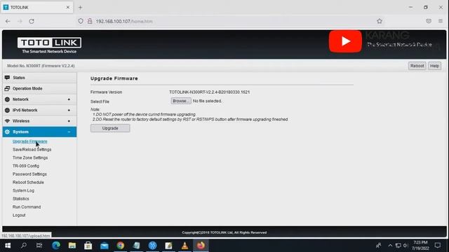 Cara Upgrade Firmware TOTOLINK N300RT