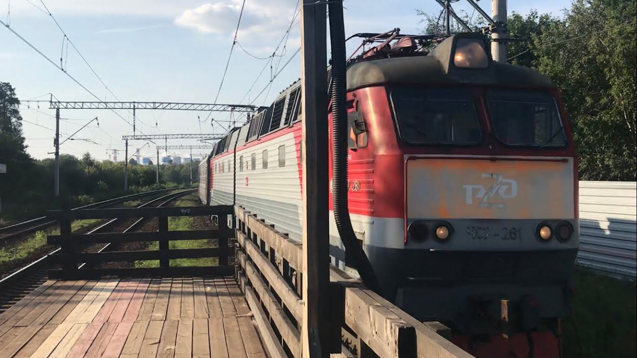 ЧС7-261 С приветливой бригадой по станции Расторгуево.Снято 1 сентября.