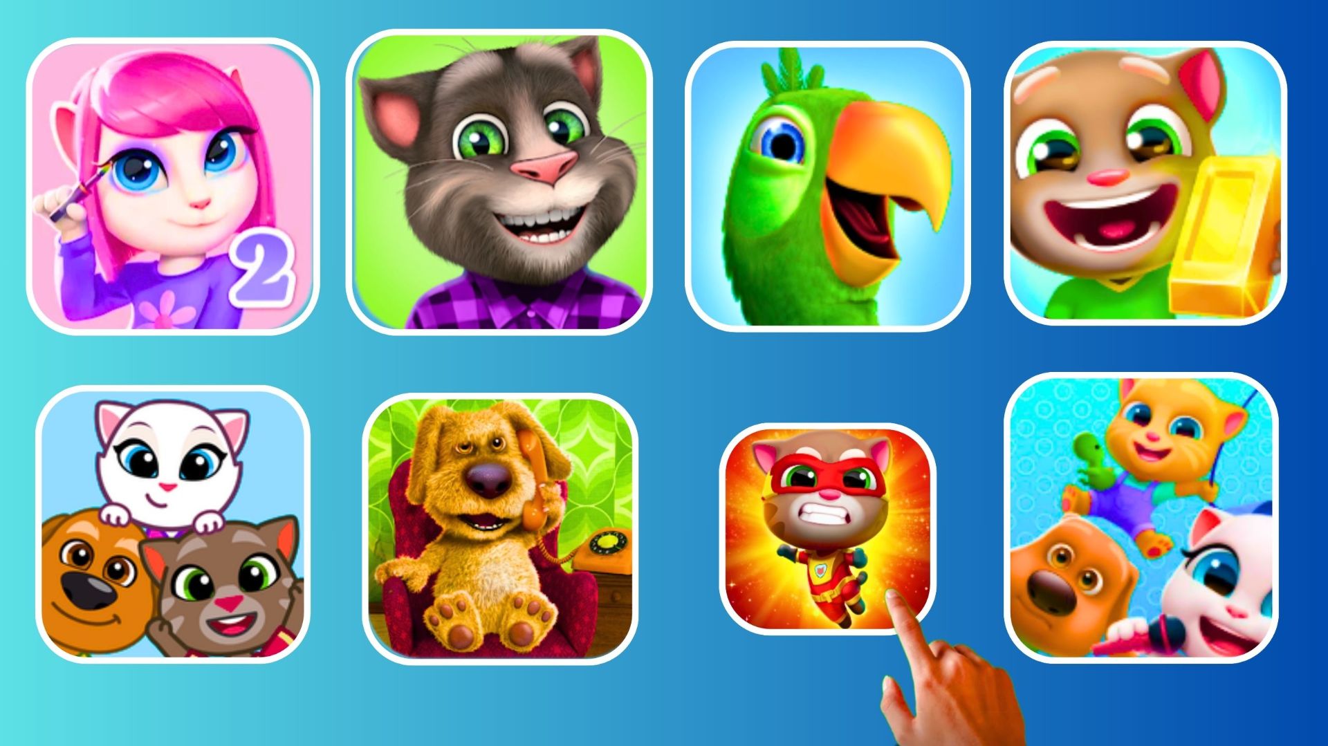 My Angela 2,Talking Tom 2 ,My Pierre,Tom Run The Gold, Tom's World,Talking,Tom Heroes,Tom Friends