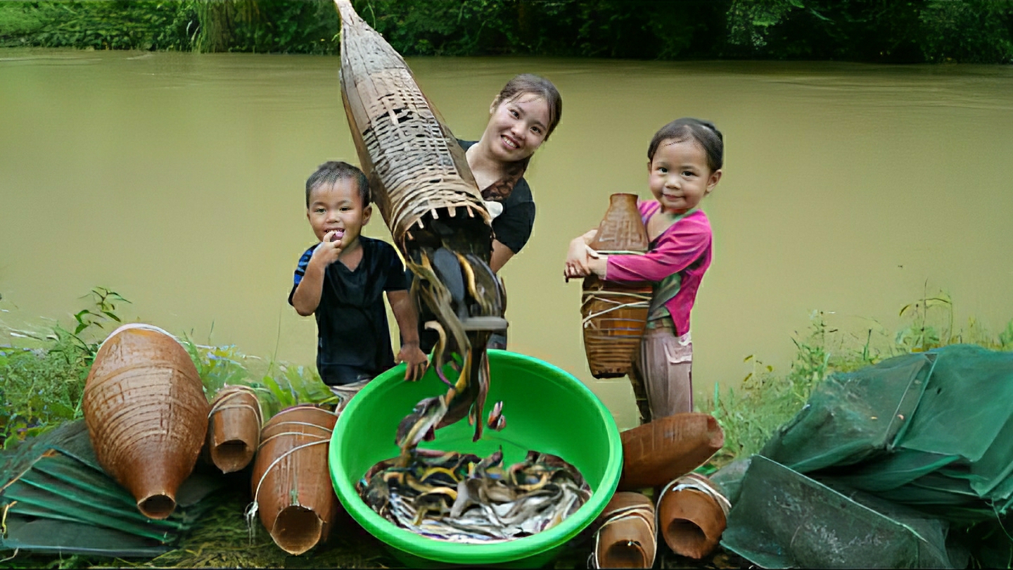 Ловля рыбы в дождливые дни, чтобы продать на рынке вместе с моей маленькой дочкой. Жизнь во Вьетнаме