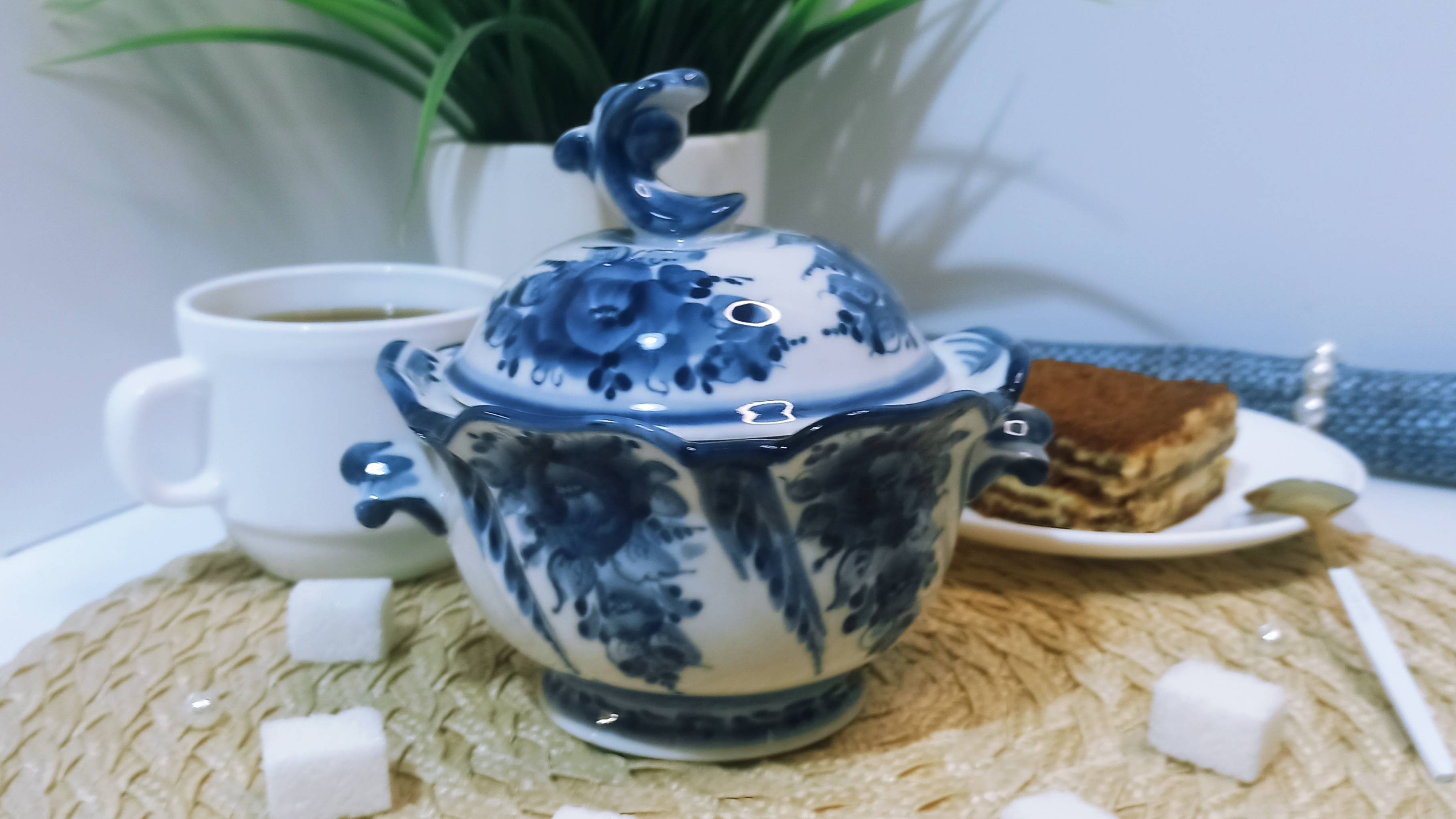 Сахарница «Морской бриз», гжельский фарфор