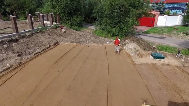 Виброкаток трамбует основание будущего фундамента в Парголово