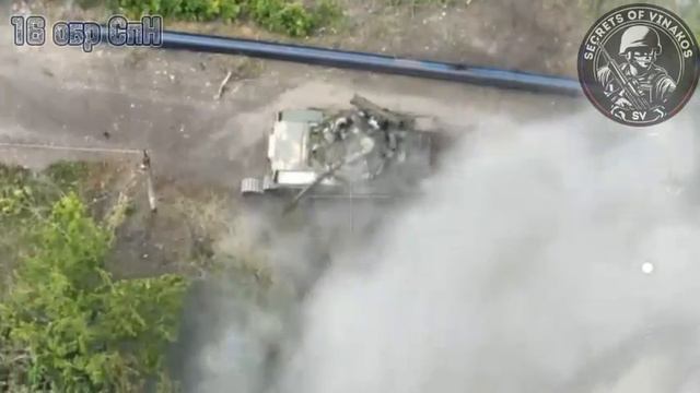Танк Т-80БВ ВСУ наехал на мину . Экипаж ретировался бросив машину.