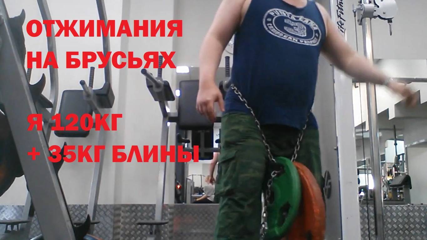 ОТЖИМАНИЯ НА БРУСЬЯХ - Я-120кг + 35кг-блины