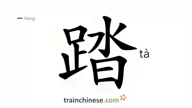 踏 (tà) to step on, stamp; tread; go to the spot