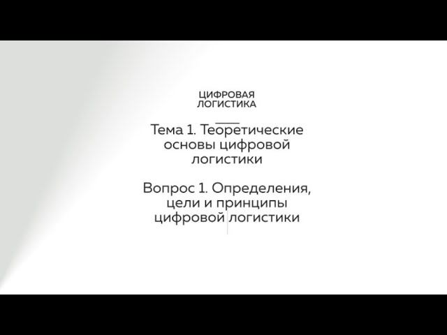 Теоретические основы цифровой логистики
