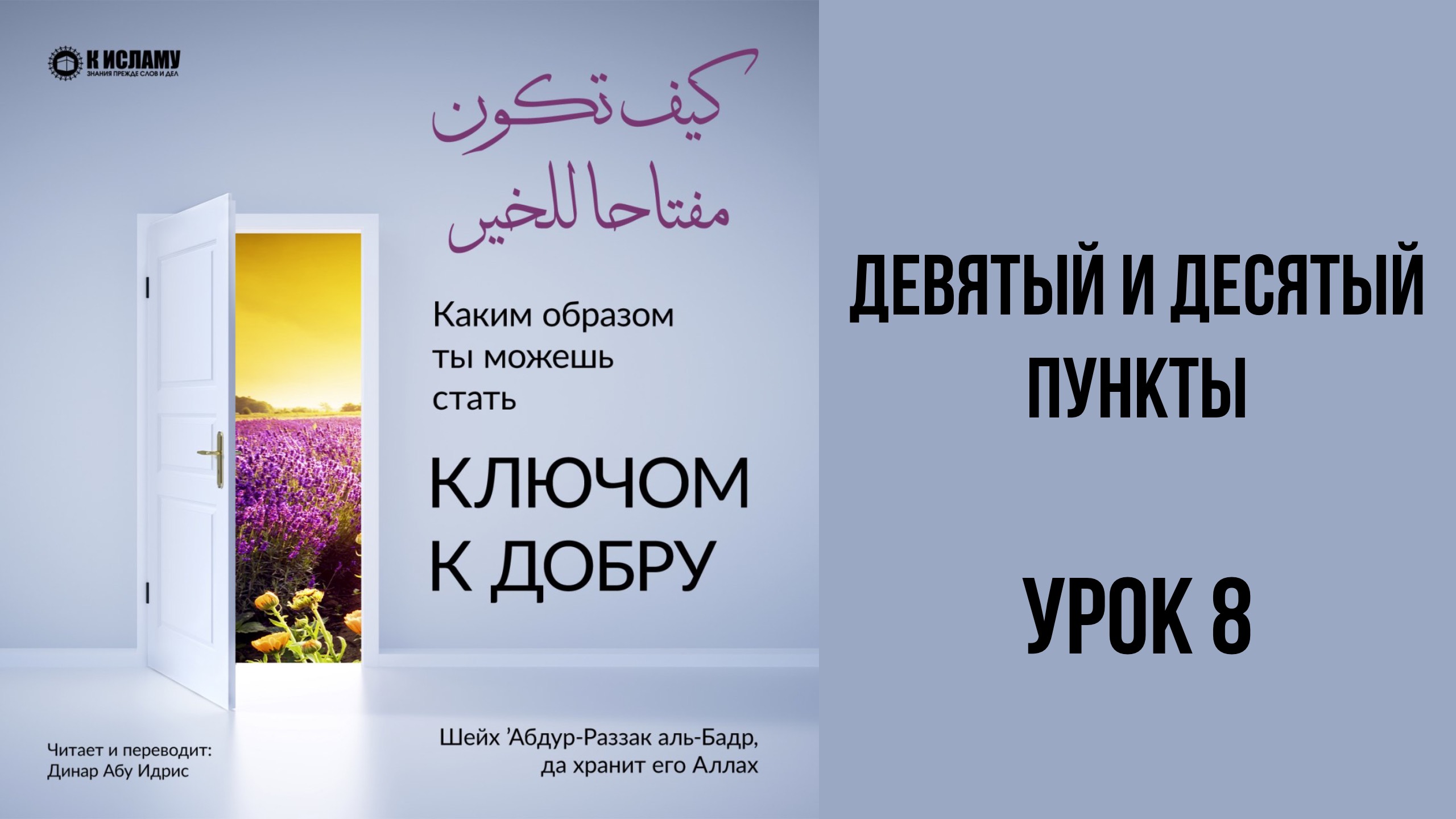 Плейлист в Рутубе: https://rutube.ru/plst/897052 Плейлист в VK Видео: https://vkvideo.ru/playlist/-57367998_10 Плейлист в YouTube:https://www.youtube.com/playlist?list=PLYEMwunvNk-6a26TkINBJO6gKv_D8Hgyz 📘 «Как стать ключом к добру?» ✍ Автор: шейх ’Абдурраззак ибн ’Абдульмухсин аль-Бадр 🎙 Читает и переводит: Абу Идрис Динар да хранит его Аллах 📖 КНИГА в оригинале на Арабском языке: https://static.toislam.ws/files/audio/07_adab/005_vospitanie_dushi/07_kluch_k_dobru/miftah_lil_khair_arab.pdf Подпишись на все уроки Динара Абу Идриса 👇 🗂 https://t.me/addlist/Ck5lQoUzQjlhZGQ6 ✅ Делись ссылкой со своими родными, друзьями! Распространяй благо!
