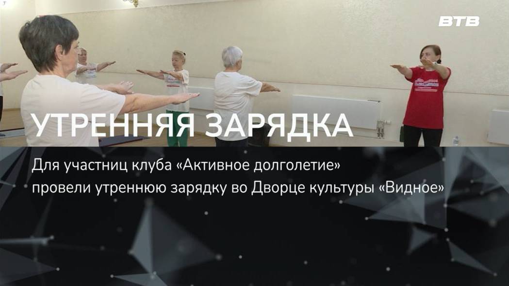Для участниц клуба «Активное долголетие» провели утреннюю зарядку во Дворце культуры «Видное». Комплекс упражнений был рассчитан на все группы мышц, а также суставы. Как прошла тренировка, узнала наш корреспондент Юлия Стафёрова.