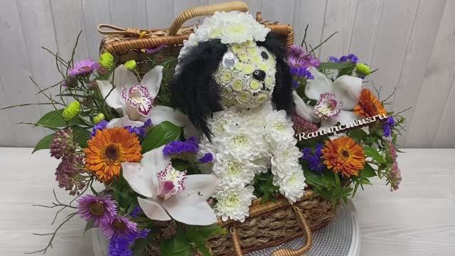 Собака породы хин из живых цветов