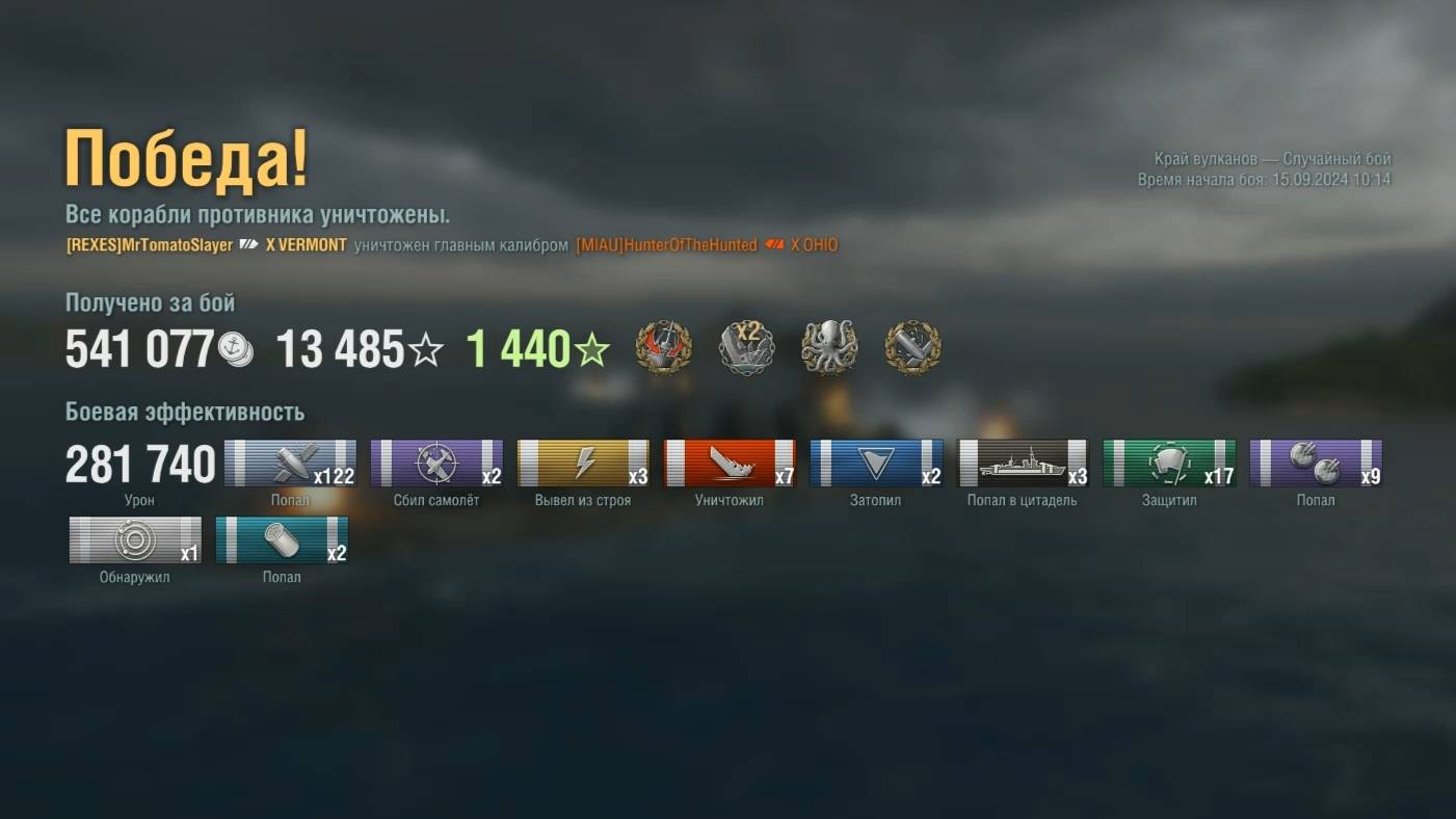 Линкор Vermont Игрок: MrTomatoSlayer (EU) Карта: Край вулканов - Случайный бой Урон: 281к Vermont - Линкор США 10 уровня Без модов!
