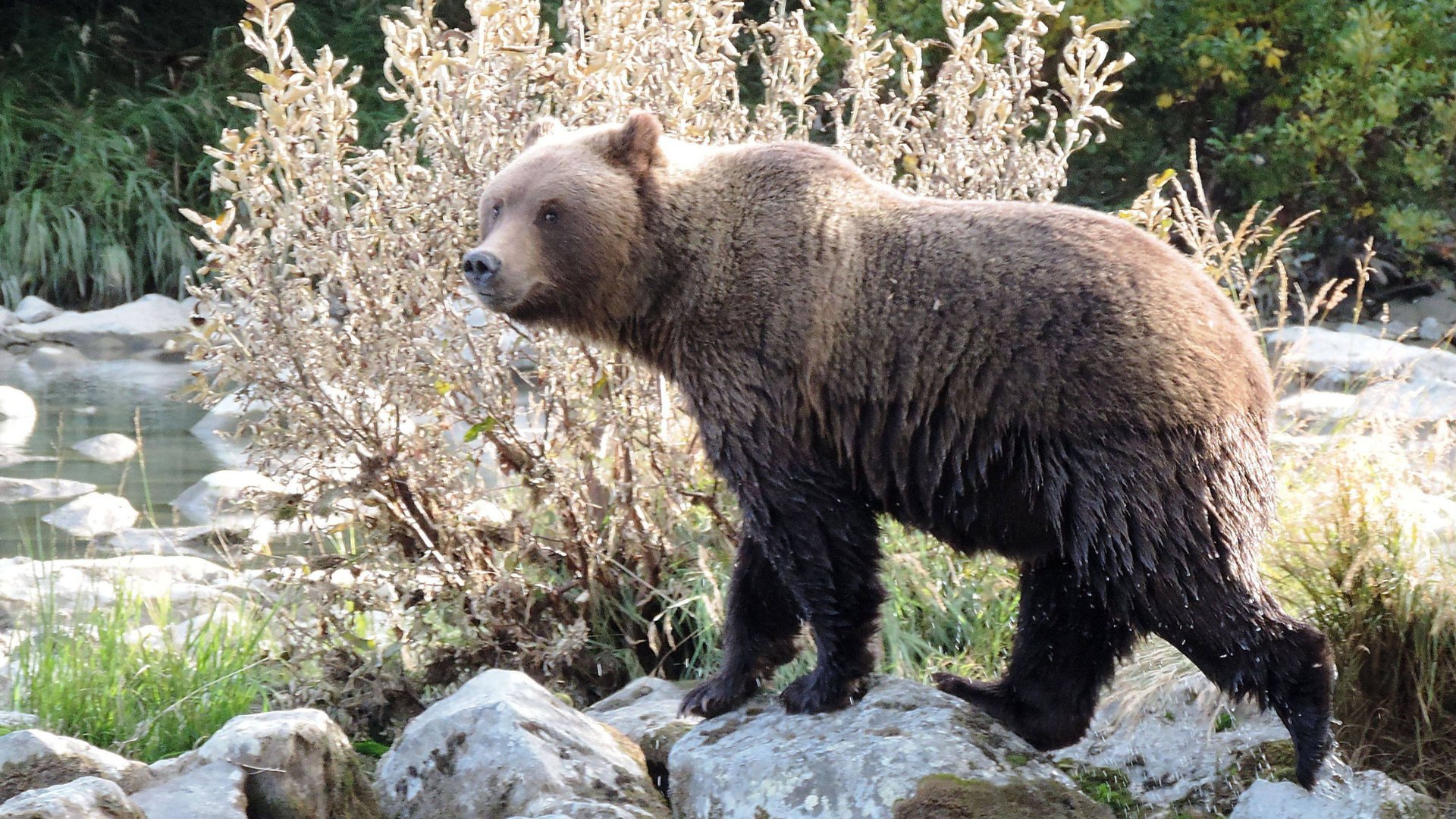 Этот медведь, очевидно, встретил человека впервые и он думает, то ли бежать, то ли с достоинством уйти. Он выбрал второй вариант.
