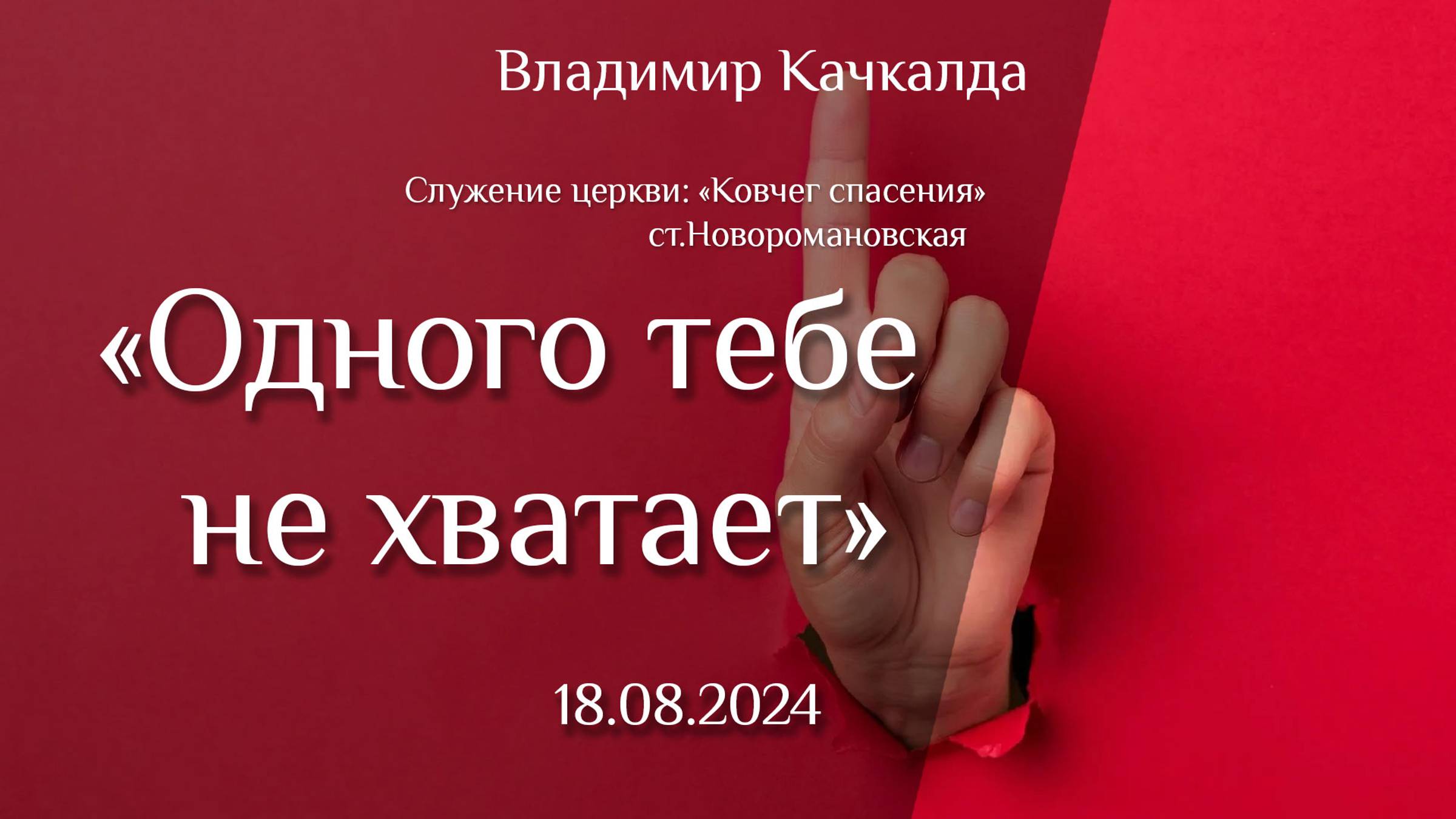 18.08.2024 проповедь "Одного тебе не хватает" пастор Владимир Качкалда
