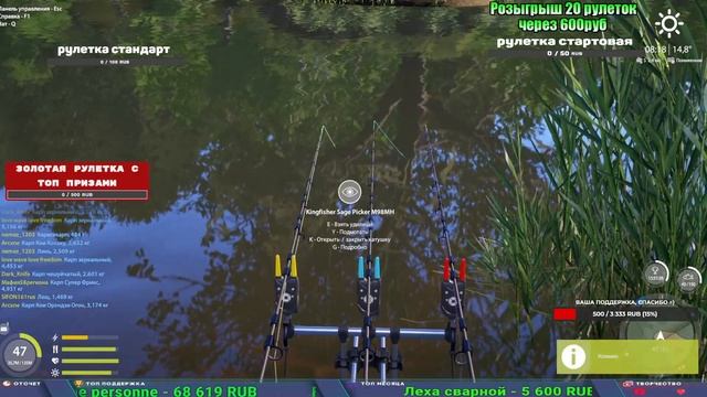 Поддержка донатом https://new.donatepay.ru/@1032463 Альтернативный донат https://www.donationalerts.com/r/kalyamba11 5536913964533059 карта Тинькоф Если стрим лагает,смотри стрим на трово https://trovo.live/s/Kalyamba_na_Ribalke Мой ВК - https://vk.com/kalyantv НИК в игре kalyan11 НАШ ДИСКОРД СЕРВЕР https://discord.gg/4ZzSQkQtsK Заказ водоема на 1 час - 500р ( весь стрим 2500р ) Модерка на канале 1200р ( каждая следующая на 100р больше) Озвучка доната на 40р,50р,100р,200р,300р,500р,1000р ✅Призы в рулетке "ЗОЛОТАЯ" ✔ ЗОЛОТО ✔ ПРЕМ ✔ КАТУШКИ РАПТОР 40, АЗИМУТ 10000, СИЛЬВЕР 80, ТАЙГА с 30 ✔ ПАЛКИ ПИЛКЕРНАЯ, ДОНКА МОРСКИЕ, ✔ РОД ПОД, СТУЛЬЯ ✅Призы в рулетке СТАНДАРТ : ✔ катушка "РАПТОР 40" ✔ катушка "АЗИМУТ 10000" ✔ катушка "ТАЙГА С30, С40," ✔ катушки 60 для медного ( ЭВИИ, НАТОРЫ, ГОЛДА, и тд) ✔ ПИЛКЕРНОЕ УДИЛИЩЕ КОРОЛЕВА ОКЕАНА ✔ Морское Донное удилище ✔ прем ( 3, 7, 30 дней) ✔ золото ( 1, 3, 5, 10, 20 ,50) ✔ билет на море ( 1, 3, 5 дней) ✔ голд наживка и др. ✅Призы в рулетке "СТАРТОВАЯ" ✔ катушка "silver80" ✔ катушка "БЕЛЫЙ КАЛИБР" ✔ катушка "Черный калибр" ✔ катушка "Протон" ✔ катушка "Нарга 6000" ✔ Набор Фидерист и спинингист ✔ Карповик Фортуна ✔ фидерные удилища ✔ прем, золото, алкашка, наживки и тд P.s Рулетка это не казино, а награда за поддержку стримера. Вечный ТОП ПОДДЕРЖКИ (11.05.2024) 1. Dimon_pokemonchik 119 784 2. Interceptor 75 508 3. Skreb79 71 261 4. une personne 68 619 5. Нарвал77 31 550