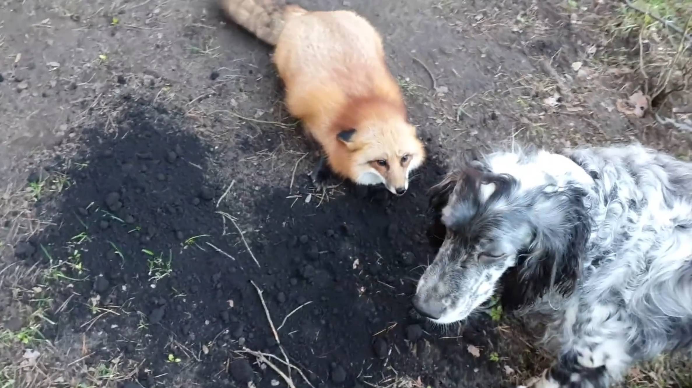 Лиса-Алиса. Лиса ругает собак из-за земли