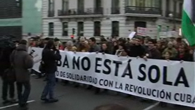 Описание: Мы - вместе с Кубой! 30 января в Мадриде прошла 8-тысячная демонстрация в поддержку Кубы.