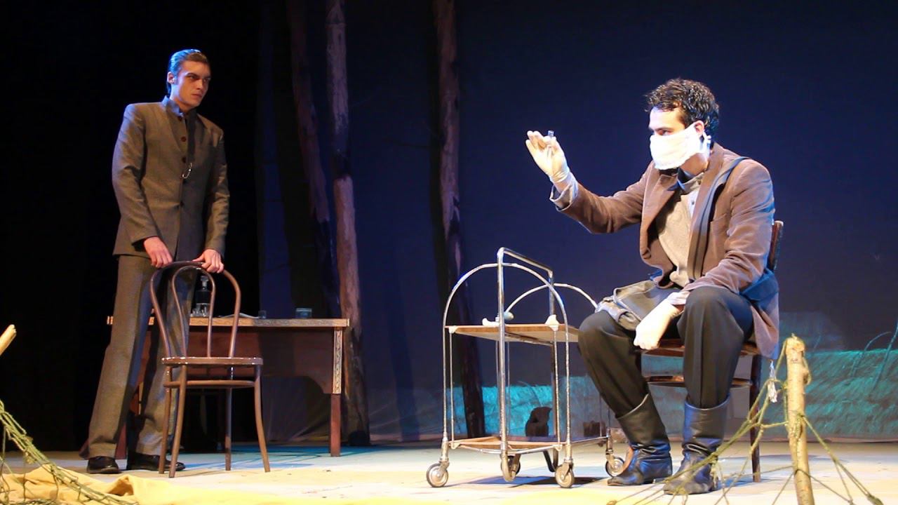 Сдача спектакля "Год змеи", Молодежный драматический театр (г. Тольятти). Автор пьесы Сергей Давыдов, режиссер Олег Толоченко. В сцене участвуют артисты Григорий Береснев, Вячеслав Смильский.