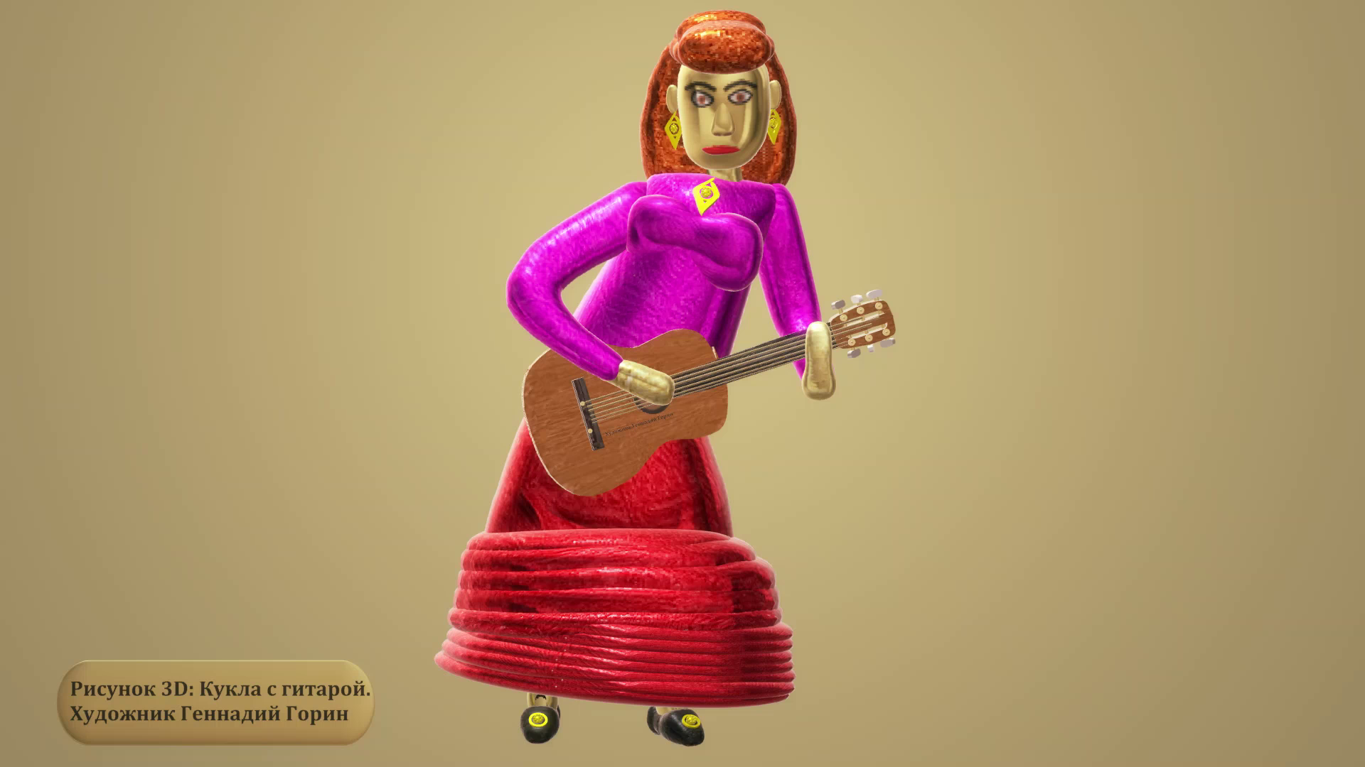 Рисунок 3D: Кукла с гитарой
