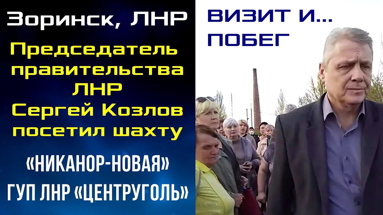 Визит и... побег. Председатель правительства ЛНР Сергей Козлов посетил шахту «Никанор-Новая» ГУП ЛНР «Центруголь» Зоринск, ЛНР. 01.05.2020. Сергей Козлов посетил шахту, спускался в шахту. Переговоры с шахтёрами не дали результата, подземная забастовка продолжается. От вопросов жен шахтеров председатель правительства фактически сбежал. Контакты Независимого профсоюза шахтёров Донбасса: Александр Васьковский vk.com/alexandervaskovsky WhatsApp +7 931 532 93 45 Почта видеоканала Фонда Рабочей Академии Рабочее ТВ: atypus@mail.ru Как вступить в Рабочую партию России: http://www.r-p-w.ru/kak-vstupit-v-rabochuyu-partiyu-rossii.html _______________________________________________ Для пожертвований в Фонд Рабочей Академии: Карта Сбербанк: 5469550034869302 Михаил Васильевич П. _________ Карта Альфа-банк: 4154812035337157 _________ Кошелёк ФРА на Яндекс.Деньги: _________ PayPal: _________ WebMoney: _________ Отчеты о поступлениях: Благодарим за помощь! _______________________________________________ Московское отделение ФРА: http:// Библиотека ФРА: http://bibl. Рабочая партия России: http://www.r-p-w.ru РПР ВКонтакте: https://vk.com/rabparty Северо-Кавказское отделение РПР: https://rpw-krd.ru