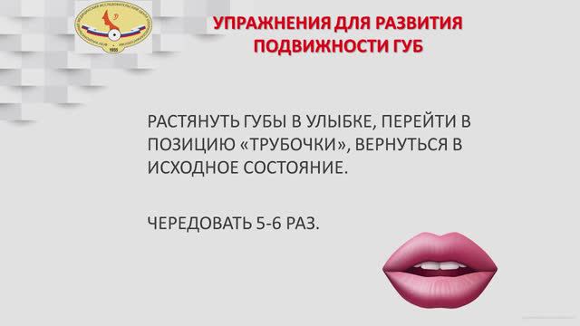 РАСТЯНУТЬ ГУБЫ В УЛЫБКЕ, ПЕРЕЙТИ В ПОЗИЦИЮ «ТРУБОЧКИ», ВЕРНУТЬСЯ В ИСХОДНОЕ СОСТОЯНИЕ