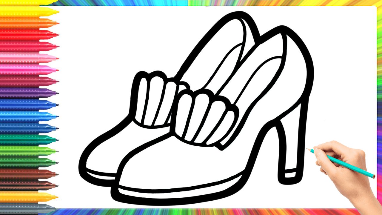 Простой рисунок и раскраска туфель для невесты